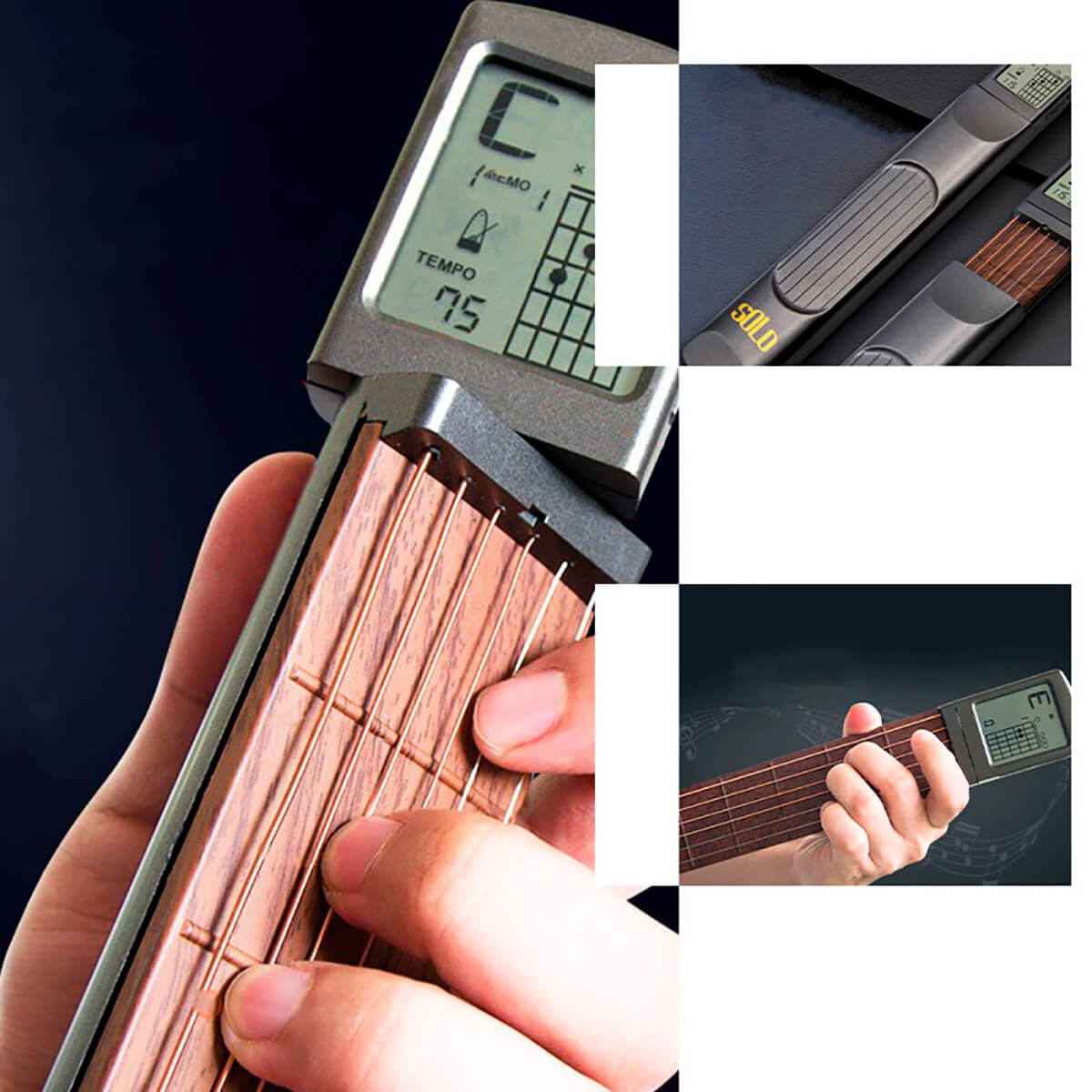 У вас есть трудности с запоминанием аккордов, медленное преобразование аккордов, трудности с удержанием, боли в руке, большие габариты гитары, которую неудобно носить с собой, и громкий гитарный звук, который беспокоит публику?