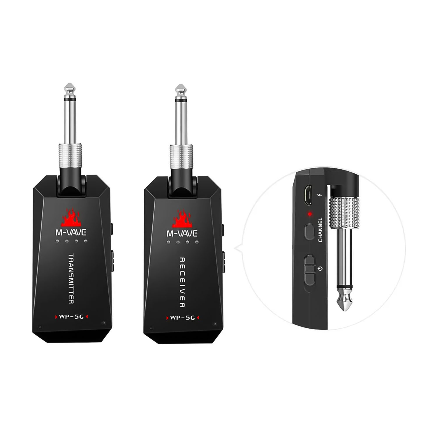 Система беспроводной передачи звука WP-5G предназначена для беспроводного подключения электронных инструментов. Беспроводная гитарная система M-VAVE WP-5G отличается низким уровнем шума, малой задержкой, высоким разрешением и длительной передачей.